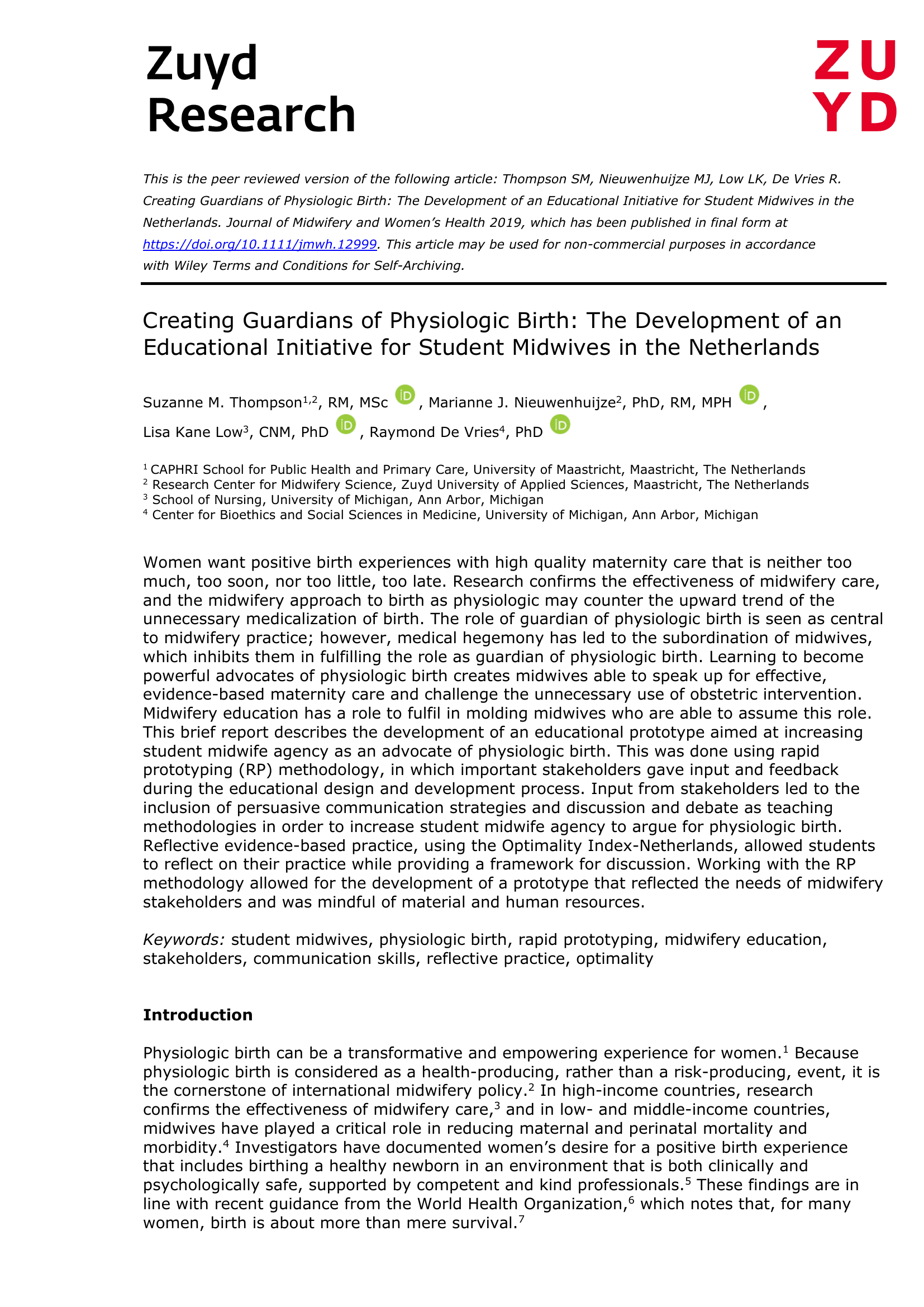 Women want positive birth experiences with high quality maternity care that is neither too much, too soon, nor too little, too late. Research confirms the effectiveness of midwifery care, and the midwifery approach to birth as physiologic may counter the upward trend of the unnecessary medicalization of birth. The role of guardian of physiologic birth is seen as central to midwifery practice; however, medical hegemony has led to the subordination of midwives, which inhibits them in fulfilling the role as guardian of physiologic birth. Learning to become powerful advocates of physiologic birth creates midwives able to speak up for effective, evidence-based maternity care and challenge the unnecessary use of obstetric intervention. Midwifery education has a role to fulfil in molding midwives who are able to assume this role. This brief report describes the development of an educational prototype aimed at increasing student midwife agency as an advocate of physiologic birth. This was done using rapid prototyping (RP) methodology, in which important stakeholders gave input and feedback during the educational design and development process. Input from stakeholders led to the inclusion of persuasive communication strategies and discussion and debate as teaching methodologies in order to increase student midwife agency to argue for physiologic birth. Reflective evidence-based practice, using the Optimality Index-Netherlands, allowed students to reflect on their practice while providing a framework for discussion. Working with the RP methodology allowed for the development of a prototype that reflected the needs of midwifery stakeholders and was mindful of material and human resources.