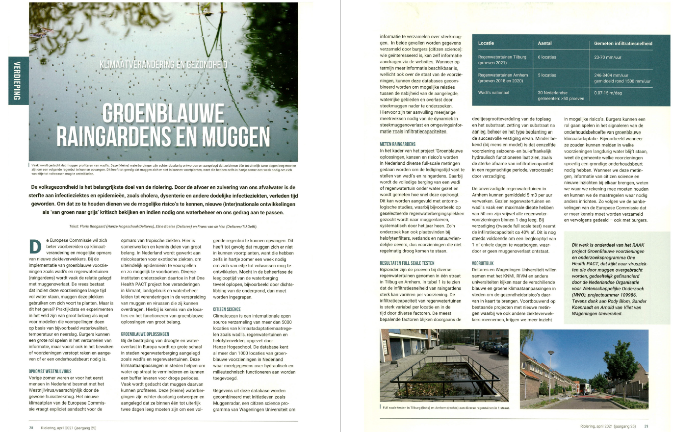 De volksgezondheid is het belangrijkste doel van de riolering. Door de afvoer en zuivering van ons afvalwater is de sterfte aan infectieziektes en epidemieën, zoals cholera, dysenterie en andere dodelijke infectieziekten, verleden tijd geworden. Om dat zo te houden dienen we de mogelijke risico's te kennen, nieuwe (inter)nationale ontwikkelingen als 'van groen naar grijs' kritisch te bekijken en indien nodig ons waterbeheer en ons gedrag aan te passen.