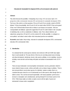This article discusses the possibility of integrating deep ecology (DE) and animal rights (AR) perspectives within environmental education (EE) and education for sustainable development (ESD). The focus of this article is on three questions: why are DE and AR not currently central to EE/ESD debates? What is the probability that DE and AR will be central within EE/ESD? What can be gained if they were? Different ethical frameworks in relation to non-humans are examined. Both non-consequentialist and utilitarian approaches suggest that DE and AR could be linked to the conception of underlying duty as well as consideration of utilitarian value. From cultural relativism and subjectivism perspectives, DE and AR could be central to EE, but this possibility is contingent on socio-political and cultural context within which educational practices are embedded. https://doi.org/10.1016/j.envdev.2014.09.001 https://www.linkedin.com/in/helenkopnina/