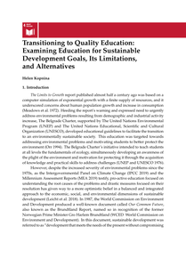 Building on the Millennium Development Goals, Education for Sustainable Development (ESD) and Education for Sustainable Development Goals (ESDG) were established. Despite the willingness of many educational institutions worldwide to embrace the SDGs, given escalating sustainability challenges, this article questions whether ESDG is desirable as “an education for the future”. Many challenges outlined by the SDGs are supposed to be solved by “inclusive” or “sustainable” economic growth, assuming that economic growth can be conveniently decoupled from resource consumption. Yet, the current hegemony of the sustainability-through-growth paradigm has actually increased inequalities and pressure on natural resources, exacerbating biodiversity loss, climate change and resulting social tensions. With unreflective support for growth, far from challenging the status quo, the SDGs and consequently, the ESDGs, condone continuing environmental exploitation, depriving millions of species of their right to flourish, and impoverishing future generations. This article creates greater awareness of the paradoxes of sustainable development and encourages teaching for sustainability through various examples of alternative education that emphasizes planetary ethic and degrowth. The alternatives include Indigenous learning, ecopedagogy, ecocentric education, education for steady-state and circular economy, empowerment and liberation. “This is an Accepted Manuscript of an article published by Taylor & Francis in 'Journal of Environmental Education' on 01/20/20, available online: https://www.tandfonline.com/doi/full/10.1080/00958964.2019.1710444 LinkedIn: https://www.linkedin.com/in/helenkopnina/