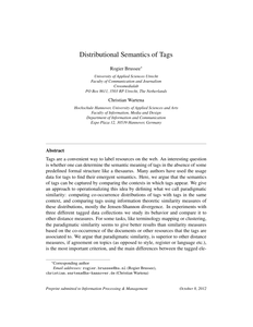 Preprint submitted to Information Processing & Management Tags are a convenient way to label resources on the web. An interesting question is whether one can determine the semantic meaning of tags in the absence of some predefined formal structure like a thesaurus. Many authors have used the usage data for tags to find their emergent semantics. Here, we argue that the semantics of tags can be captured by comparing the contexts in which tags appear. We give an approach to operationalizing this idea by defining what we call paradigmatic similarity: computing co-occurrence distributions of tags with tags in the same context, and comparing tags using information theoretic similarity measures of these distributions, mostly the Jensen-Shannon divergence. In experiments with three different tagged data collections we study its behavior and compare it to other distance measures. For some tasks, like terminology mapping or clustering, the paradigmatic similarity seems to give better results than similarity measures based on the co-occurrence of the documents or other resources that the tags are associated to. We argue that paradigmatic similarity, is superior to other distance measures, if agreement on topics (as opposed to style, register or language etc.), is the most important criterion, and the main differences between the tagged elements in the data set correspond to different topics