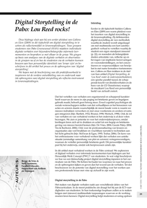 Deze bijdrage sluit aan bij een eerder pleidooi van Callens en Elen (2009) in dit tijdschrift om digital storytelling in te zetten als reflectiemiddel in lerarenopleidingen. Twee groepen studenten van Pabo Groenewoud (HAN) maakten individuele digitale verhalen over bijzondere/belangrijke informele leermomenten en bespraken ze met elkaar in de groep. We gingen op basis van analyses van de digitale verhalen en observaties in de groepen na of en hoe de studenten via de verhalen kunnen bouwen aan hun persoonlijke identiteit van leraar zijn en beschrijven in dit artikel het proces en de opbrengsten van ‘digital storytelling’. We hopen met de beschrijving van dit praktijkvoorbeeld te inspireren tot de verdere ontwikkeling van en onderzoek naar (de opbrengsten van) digital storytelling als reflectie-instrument in lerarenopleidingen.