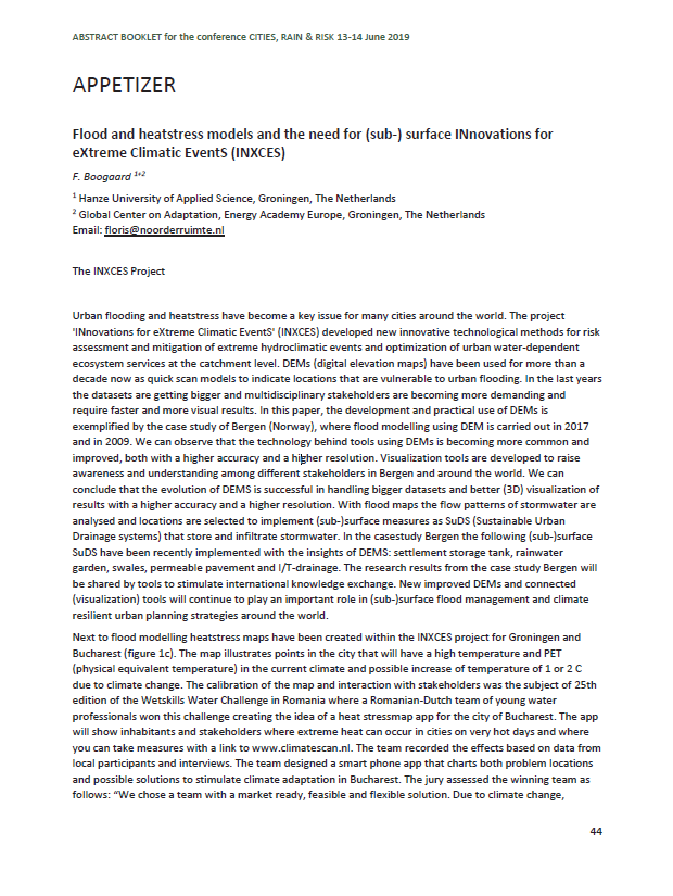 Flood and heatstress models and the need for (sub-) surface INnovations for eXtreme Climatic EventS (INXCES)