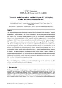 This paper presents data-driven insights from a case study that was carried out in an University EV charging plaza where EV charging demand is met with the combination of the University campus grid and installed solar capacity. First, we assessed the plaza dependency on the grid for meeting EV charging demand and intake of excess solar energy using the available dataset. By modifying the plaza network to accommodate a small approx. 50 kWh battery storage can significantly reduce the grid dependency of the plaza by approx. 30% compared to the present situation and can also increase the green energy utility for EV charging by 10-20%. Having an battery storage could also help overcome the limitations due to the campus grid capacity during EV charging peak demand by means of scheduling algorithms. Second, we assessed the utility rate of the plaza which indicated that the average utility of charging infrastructure is about 30% which has an increasing trend over the analysed period. The low utility and EV charging peak demand may be the result of current EV user behavior where the average idle time during charging sessions is found to be approx. 90 minutes. Reduction in idle time by one third may increase the capacity and utility of plaza by two to two and half times the forecasted daily demand. By having the campus grid capacity and user information may further help with effect EV demand forecasting and scheduling.