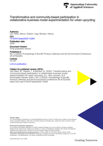 Across cities and urban regions in The Netherlands unusual collaborations emerge which aim to develop new circular business models that facilitate product and resource longevity through various upcycling strategies, such as reuse, repair, refurbish, repurpose and/or remanufacture. Municipalities, social entrepreneurs as well as multinational enterprises use various experimentation methods to initiate, test or improve new collaborations in urban upcycling. However, little is known about the role of transformative stakeholder participation in these experiments and how they affect business models for upcycling. Therefore, this study investigates how initiators in urban upcycling use transformative and community-based participatory experimentation to develop collaborative circular business models that facilitate upcycling in a city context. Through a multiple case study approach, this research contributes to literature on circular business model innovation by investigating how practitioners in urban upcycling collaboratively develop, test, implement and scale business models for product and resource longevity in a city context.