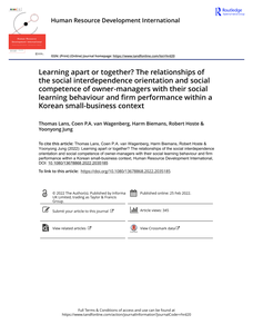 The present study aims to contribute to the body of knowledge on HRD in small businesses by providing a detailed investigation of the role that owner-managers play in enabling social learning and performance in small firms. The investigation focusses particularly on the specific relationships of the social-interdependence orientation and social competence of owner-managers with their social learning behaviour, as well as with the performance of their smallbusinesses within the pig-production sector in the Republic of Korea. A survey was conducted amongst nearly 200 Korean ownermanagers of pig farms. The results indicate that social interdependence orientations and social competencies have a significant relationship with social learning behaviour. Self-promotion and a cooperative orientation are especially important, with selfpromotion taking precedence for social learning behaviour of a more ‘internal’ nature, and a cooperative attitude being more important social learning behaviour of a more ‘external’ nature. Social competence and social interdependence did not have a significant relationship with performance, but social learning behaviour did. The results further highlight the importance of individual social characteristics to social learning behaviour occurring outside highly structured educational settings, in addition to demonstrating that the competence and attitudes required are determined by the type of interaction partner.