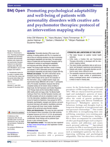 Personality disorders (PDs) cause much suffering. In treating patients with PDs, it is important not only to focus on reducing symptoms, but also on promoting psychological adaptability and well-being. The experiential nature of Creative Arts and Psychomotor Therapies (CAPTs) contributes to working on psychological adaptability and improving well-being, although more evidence is needed. This protocol paper describes a study to develop and evaluate a CAPTs-intervention aimed at promoting psychological adaptability and well-being in people with PDs.