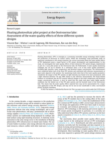 Floating photovoltaics (FPV) is emerging as a promising renewable energy technology which enables the production of electricity on surface waters. While this technology could potentially make an important contribution to the energy transition, the current uncertainty about the water quality effects of FPV deployment poses a major barrier to FPV project development and implementation. In this study, we investigated the water quality effects of three distinctive FPV system designs, implemented as part of a 1-year pilot project at the Oostvoornse lake, the Netherlands. A water quality monitoring campaign was set up to monitor on a continuous basis a set of key water quality parameters, including light intensity, water temperature and dissolved oxygen concentration. The measurements were conducted below each of the three FPV systems and contrasted with reference measurements at open water adjacent to the systems. Our monitoring results show that of the water quality parameters considered, the impact of the FPV systems on light intensity was found to be most pronounced, with a light reduction between 73% and 100% relative to the reference measurements. We found limited evidence to corroborate that the FPV systems induced changes to the water temperature and dissolved oxygen concentration. However, it must be noted that this study took place under highly specific conditions due the limited size of the FPV pilot systems and the brackish water of the Oostvoornse lake. This means that the water quality effects reported here may not be representative for a larger scale application of the FPV designs, and may not be one-on-one transferable to other, non-brackish project locations elsewhere.