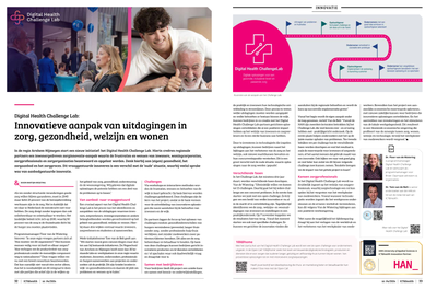 In de regio Arnhem-Nijmegen start een nieuw initiatief: het Digital Health Challenge Lab. Hierin creëren regionale partners een inwonergedreven zorginnovatie-aanpak waarin de frustraties en wensen van inwoners, woningcorporaties, zorgprofessionals en zorgorganisaties beantwoord en opgelost worden. Denk hierbij aan (eigen) gezondheid, het zorgaanbod en het zorgproces. Dit vraaggestuurde innoveren is een verschil met de ‘oude’ situatie, waarbij veelal sprake was van aanbodgestuurde innovatie.