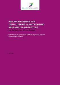 Dit verkennende advies is opgesteld op verzoek van Provinciale Staten van Noord-Brabant die aan GS hebben gevraagd (motie nr. 47, begrotingsbehandeling 10 november 2017) BrabantAdvies een verkenning te laten uitvoeren naar de maatschappelijke risico’s van digitalisering. Doelstelling van het advies is het bieden van een opmaat voor een politiek-bestuurlijk handelingsperspectief voor het provinciaal bestuur.