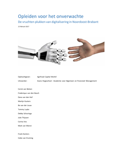 De afgelopen zes maanden heeft een team onderzoekers bestaande uit docenten en studenten van de Minor HR Advies van AVANS Hogeschool Breda in opdracht van AgriFood Capital Werkt! onderzoek verricht naar de gevolgen van digitalisering voor de arbeidsmarkt in Noordoost‐Brabant. ‘Hoe kunnen AgriFood Capital Werkt! en haar vooraanstaande participanten uit onderwijs, overheid en bedrijfsleven, inspelen op de gevolgen van digitalisering (automatisering, robotisering) voor de arbeidsmarkt en het onderwijs in de regio, zodat optimaal gebruik wordt gemaakt van de kansen die deze ontwikkelingen bieden en zodat de bedreigingen die hieruit voortvloeien worden onderkend en opgevangen?’