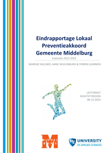 Roken, overgewicht en alcoholgebruik zijn veruit de grootste veroorzaker van ziektelast in Nederland met 35.000 doden en 9 miljard euro aan zorguitgaven per jaar (CBS, 2022). Om dit probleem aan te pakken heeft de Rijksoverheid in 2018 het Nationaal Preventieakkoord opgezet. Met het Nationaal Preventieakkoord (NPA) streeft de Rijksoverheid samen met maatschappelijke organisaties om Nederlanders gezonder te maken (VWS, 2018). Binnen dit akkoord staan de thema’s roken, overgewicht en alcoholgebruik centraal. Intussen zijn deze thema’s uitgebreid met mentale gezondheid en het terugdringen van gezondheidsachterstanden (Ooijen, 2022). Vanuit het NPA kunnen gemeentes met een lokaal preventieakkoord (LPA) voortborduren op het nationale programma (VWS, 2022). Lokale preventieakkoorden geven ruimte om de thema’s in het NPA te verbinden met specifieke problematiek waarmee inwoners binnen een gemeente kampen. Daarbij valt te denken aan schulden, armoede en eenzaamheid. De gemeente of regio bepaalt zelf welke problematiek centraal staat in een lokaal preventieakkoord: de lokale behoefte is leidend. In navolging van het NPA stelde de gemeente Middelburg haar eigen lokale preventieakkoord op in April 2021. Het doel van het lokale akkoord was het realiseren van collectieve impact op belangrijke leefstijlaspecten. Om deze collectieve impact te faciliteren zette de gemeente in op de creatie van projecten op de gebieden: 1. Roken, 2. Alcohol, 3. Gezond gewicht, 4. Mentale gezondheid en 5. Gezonde leefomgeving. Naast enkele grotere projecten die door de gemeente werden getrokken kregen inwoners van de gemeente de mogelijkheid om via een online platform kleinere subsidies aan te vragen voor een eigen project dat bij een van de preventieakkoord thema’s aansloot. Deze initiatieven werden vanuit de gemeente tevens getest aan de hand van drie kernwaarde: brede blik op gezondheid; toegankelijk voor alle inwoners en samenwerken. De rol van het Lectoraat Healthy Region was het lokaal preventieakkoord te monitoren en te evalueren. Deze evaluatie heeft plaatsgevonden vanuit drie invalshoeken: (1) schetsen van een beginsituatie; (2) evalueren van de deelprojecten doormiddel van een procesevaluatie en impactscore en (3) tweemaal een netwerkanalyse om eventuele veranderingen in 5 samenwerkingen weer te geven. In dit rapport worden de uitkomsten, conclusies en aanbevelingen van deze evaluatie weergegeven.