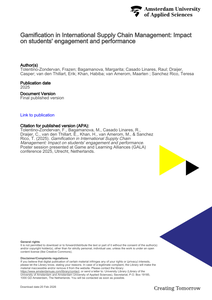This study evaluates the effect of gamification on the engagement and performance of first-year students in the International Supply Chain Management course at a University of Applied Sciences. Several students were exposed to the pilot of The Fresh Connection compact, a simulation game which was implemented between May to June 2025. Based on 350 observations, students are categorized as control group (without exposure to game, n = 217) and treatment group (with exposure to game, n = 133). These groups were further divided based on individual’s final grade: pass (grade ≥ 5.5) or fail (grade ˂5.5). The dataset is supplemented by a survey of students that played the game. Results show significant difference between students who participate in the game and took both exams (78%) versus 44% of students who do not participate in the game (p-value = 9.39e−10), as well as between students’ participation in the game and their exam performance (p-value = 7.17e−13). Overall, the survey shows significant satisfaction of students in using TFC game (71%), although some students would like to see tighter integration of the game in course assessment. Learnings from this pilot will be used to improve student engagement and passing rate.