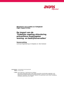 Het Schadefonds Geweldsmisdrijven voert sedert 2010 de ‘Tijdelijke regeling stimulering preventieve maatregelen woning- en bedrijfsovervallen’ uit in opdracht van het Ministerie van Justitie en Veiligheid. Per januari 2019 is weer een periodieke verlenging aan de orde. Om deze reden heeft het Ministerie van Justitie en Veiligheid om een korte evaluatie gevraagd, inclusief een advies over de verbetering van de subsidieregeling.