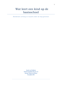 Op dit moment is de kunst- en cultuureducatie en daarmee de kwaliteit ervan, weer actueel door de recentelijk geschreven brief door staatssecretaris Zijlstra waarin hij een nieuwe visie op het cultuurbeleid geeft ( Zijlstra, 2011). In zijn brief geeft de staatssecretaris aan dat het kabinet het onderwijs een steviger fundament wil bieden om de kwaliteit van cultuureducatie te verhogen. Hij biedt daarin onder andere een ondersteuning voor een betere invulling van de kerndoelen cultuureducatie. Voordat deze ondersteuning kan worden gestart, zal het kabinet de Onderwijsraad en de Raad voor Cultuur vragen om advies te geven over de huidige vormgeving van cultuureducatie in het onderwijs. Pas dan kan de ondersteuning inhoudelijk worden vormgegeven ( Zijlstra, 2011). Deze vraag voor advies toont dat er nu ook nog stappen te nemen zijn in de verbetering van de kwaliteit en de invulling van kerndoelen binnen de cultuureducatie. In mijn eigen praktijk als docent beeldende vorming op middelbare scholen, Havo en Vmbo, zie ik grote verschillen in de invulling van het kunstonderwijs en in de kwaliteit van het werk van de leerling. Soms had die kwaliteit naar mijn mening te maken met het ontbreken van motorische kwaliteiten of desinteresse voor het vak. Maar in veel gevallen kreeg ik het gevoel dat de leerlingen op de basisschool onvoldoende vaardigheden op hadden gedaan, dat ze nog niet rijp waren voor het kunstonderwijs op de middelbare school. Wat heeft de basisschool zijn leerlingen werkelijk geleerd en hoe hebben zij geprobeerd aan te sluiten bij middelbaar onderwijs? Het bracht mij tot de volgende onderzoeksvraag: ‘wat leert een kind op de basisschool bij de vakken beeldende vorming en muziek?’