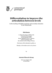 In 1986, English became a compulsory subject in primary education in The Netherlands1. While secondary schools have, by law, been required to offer English since 1863 the articulation between Dutch primary and secondary education levels of English language teaching has always been problematic to the point it has been referred to as a connection problem. The term ‘articulation between levels’ has been used frequently to refer to the connection between parts of the language education system, such as between primary and secondary education and between secondary and tertiary education. In particular the group of Richard Lambert at the National Foreign language centre in Washington have promoted research on articulation between levels. This study focusses on the connection between primary and secondary education and the possibility to improve the articulation between these levels with regard to the English teaching in The Netherlands.