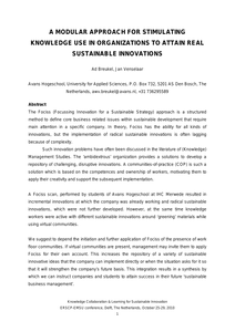 The Fociss (Focussing Innovation for a Sustainable Strategy) approach is a structured method to define core business related issues within sustainable development that require main attention in a specific company. In theory, Fociss has the ability for all kinds of innovations, but the implementation of radical sustainable innovations is often lagging because of complexity. Such innovation problems have often been discussed in the literature of (Knowledge) Management Studies. The 'ambidextrous' organization provides a solutions to develop a repository of challenging, disruptive innovations. A communities-of-practice (COP) is such a solution which is based on the competences and ownership of workers, motivating them to apply their creativity and support the subsequent implementation. A Fociss scan, performed by students of Avans Hogeschool at IHC Merwede resulted in incremental innovations at which the company was already working and radical sustainable innovations, which were not further developed. However, at the same time knowledge workers were active with different sustainable innovations around 'greening' materials while using virtual communities. We suggest to depend the initiation and further application of Fociss of the presence of work floor communities. If virtual communities are present, management may invite them to apply Fociss for their own account. This increases the repository of a variety of sustainable innovative ideas that the company can implement directly or when the situation asks for it so that it will strengthen the company's future basis. This integration results in a synthesis by which we can instruct companies and students to attain success in their future 'sustainable business management'.