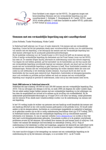 In Nederland heeft iedereen boven de 18 jaar stemrecht. Ook mensen met een verstandelijke beperking. De helft van de mensen met een lichte of matige verstandelijke beperking uit het Panel Samen Leven van het NIVEL maakte er gebruik van bij de laatste verkiezingen. Familieleden noemen diverse oorzaken en redenen waarom stemmen door mensen met een verstandelijke beperking nog niet vanzelfsprekend is.